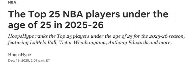 火箭三名球员入选!新赛季开始两个月后,美国媒体《hoopshype》根据最新的表现更新,公布了NBA 25岁以下新星前25名的名单。其中,沉静4号,阿门14号,牧峰遗憾错失良机。第一名:文班(21岁)25-26赛季:25.1分、12.3篮板、3.9助攻、1抢断、3.5盖帽。从身体天赋来看,文班亚马是NBA历史上真正的“独角兽”。他在防守端已经是DPOY的有力竞争者,并且在进攻端也在不断进步。尤其是随着核心实力的逐渐提升,本亚马内线的威胁变得更加严重,使得他在进攻端的效率和投篮选择更加合理高效。目前,唯一阻碍本亚马的是伤病。如果他长期保持健康,本亚马不仅会成为NBA的新面孔,而且有希望成长为历史巨星。毕竟他才21岁,已经是合理的MVP候选人了。第二名:爱德华兹(24岁)25-26赛季:28.7分4.9篮板3.8助攻1.2抢断。作为美国新一代最好的球员,爱德华兹不仅长得像乔丹,他顶尖的身体天赋、开朗的性格和永不放弃的精神也与乔丹非常相似。这使得爱德华兹几乎每个赛季都能取得巨大进步。本赛季依然如此。爱德华兹进一步增加了他的产量。在场均三分球命中数排名联盟第一的同时,他的三分球命中率也以41.6%排名联盟第三。同时,他的BPM值联盟第11,VORP值联盟第16。他还努力向更高的星级发起冲击。如果能够提高自己的传球和控制能力,爱德华兹一定会进入超级巨星的行列。第三名:坎宁安(24岁)25-26赛季:27.2分,6.2分篮板、9.2次助攻、1.4次抢断。坎宁安和爱德华兹一样,都是 24 岁,短期内不会出现在这个名单上,但他完全值得进入前三名。作为典型的高大控球后卫,坎宁安拥有出色的视野和天赋。在他的带领下,活塞队彻底转变为一个合法的竞争者,目前位列东部第一。同时,坎宁安拥有一颗大心脏和顶级巨星标准的控球技术,让他在活塞队的未来一片光明。第四位:沉静(23岁)25-26赛季:23.7分9.5篮板7.2助攻1.5抢断1盖帽。沉静是令人惊讶的超级新星,但像乌杜卡一样,过去两个赛季的执教成绩令人印象深刻,在球队实力不足、进球数较低的情况下,他们的技术值得称赞。当火箭真正准备冲击总冠军时,沉静的投篮问题、高球打法、乌杜卡的粗暴进攻系统暴露了。不得不承认,沉静是一名好球员,乌杜卡是一名好教练,但他还远远没有达到冠军级别球队的要求。 5-10:杰伦·威廉姆斯、本奎罗、莫布里、霍姆格伦、巴恩斯、小贾伦·杰克逊。第11-15名:小瓦格纳、弗拉格、阿夫迪亚、阿门,三球。阿门成为第二位入选TOP25名单的火箭球员。在过去的两个赛季中,他已经看到了自己历史性的运动天赋水平,并且一直是防守端 DPOY 的有力竞争者。然而,当火箭本赛季试图向更高的目标发起进攻时,阿门糟糕的技术能力,包括但不限于传球和投篮,限制了这位年轻人的上限。如果阿门不能继续提升自己的投篮和传球控制能力,那么他的上限永远是角色球员。 16-25名:Jaylen Duren、Guidi、Daniels、Castle、Sharp、Sarr、Marcelin、Keonte George、Xiaojia、Knupel。小加成为本赛季第三位火箭球员电子清单。之所以没有获得高排名,主要是因为小加一直被定位为蓝领3D前锋。结果贾跃亭始终没能将这个定位做到极致。他的三分球投篮太不稳定了。幸运的是,他与火箭签下了一份长期合同,而且才22岁。他还有很多时间来提高投篮的稳定性。这也是他能够在NBA立足的基础。