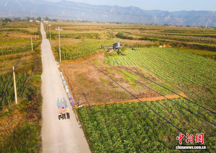 中新网临汾10月16日电 标题:山西临汾:无人机“执勤”,为配电网插上“数字翅膀”