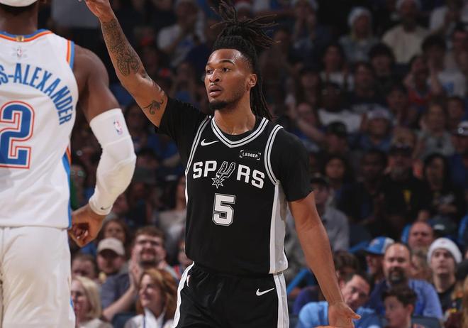 亚历山大这场比赛非常糟糕,他连续得分20+的纪录也快结束了。他19投7中,三分球6投1中。好在他罚球8中7,拿到了22分。马刺队窒息亚历山大的策略奏效了。主要保卫亚历山大的城堡做出了重大贡献。此战,他不仅死死防守亚历山大,而且进攻也打得不错,11投8中,罚球5中3,拿下19分4篮板7助攻1抢断。本场比赛,亚历山大面对卡斯尔的防守时,10投2中,三分球1中0,投篮命中率只有20%。亚历山大是一名身材高大的控球后卫,但卡斯尔和亚历山大一样高,身体也比亚历山大强壮。录音能力非常好是Castle的目标。他可以靠近亚历山大,同时小心不要被亚历山大的犯规所愚弄。当然,马刺能够限制亚历山大并不是因为卡斯尔。本场比赛,外线马刺队的艾尔斯轮流防守亚历山大,瓦塞尔、福克斯等人也参与防守。他们都非常有运动天赋,可以追随亚历山大的脚步。马刺的内线由文班亚马或科内特防守,两人都有护筐能力。亚历山大并没有轻易进攻禁区。热刺球员的运动能力很强,可以很快回撤。亚历山大不能像过去那样利用快攻得分。不得不说的是,亚历山大在对阵热刺的比赛中很难保持自己的节奏,打得非常别扭。卡斯尔无疑是马刺限制亚历山大的第一功臣。这位二年级球员已经成为攻防两端的明星,并且正在成为全明星球员。卡斯尔本赛季场均贡献18.6分5.2篮板7.0助攻1.3抢断,投篮命中率51.5%,三分命中率29.8%,罚球命中率71.9%。如果Castle继续他现在的出色表现并且马刺继续晋级,他本赛季有机会以替补身份入选全明星。值得一提的是,卡斯尔在对阵强大的雷霆队时一直表现出色。本赛季对阵雷霆队的三场比赛中,卡斯尔分别得到22分、24分和19分,高于他的赛季平均分。上赛季最后一场对阵雷霆队的比赛中,卡斯尔拿下32分8篮板3助攻。此前对阵雷霆的四场比赛,佩卡斯特的投篮命中率分别为57.1%、56.3%、58.3%和72.7%。雷霆队的外线防守据说是联盟最高水平的,拥有众多3D英雄。然而,卡斯尔似乎能够无视雷霆队的外线防守。他只是个二年级的球员啊!令人不得不佩服的是,卡斯尔拥有出色的运动天赋、极高的高尔夫智商和高超的球技。美国自媒体73-9和THEY LIED特意称赞Castle:“Castle是我最喜欢的后卫,1.98米版的Dwa韦德身高1.93米,作为得分后卫,他成为了一代巨星,赢得了三座NBA总冠军,其中包括总决赛MVP。21岁的卡斯尔仍然有很大的潜力,力量是可以挖掘的,他本赛季提高了组织和进攻能力,并继续进步。